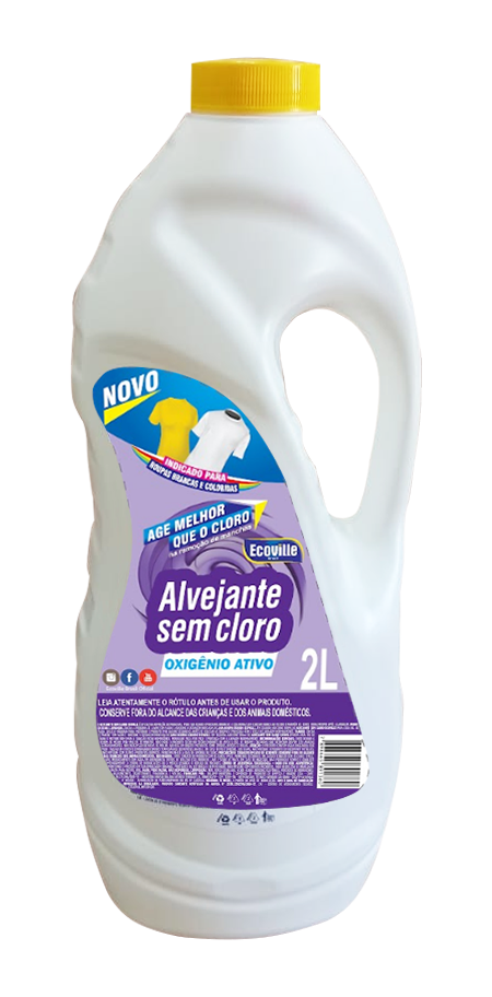 Alvejante seguro para cores e brancos. Remove manchas difíceis sem agredir as fibras.